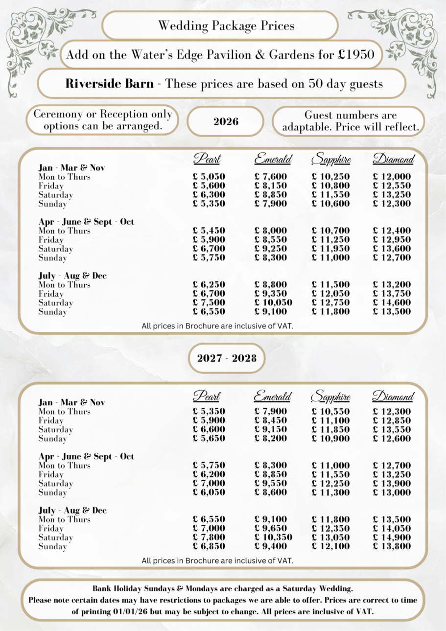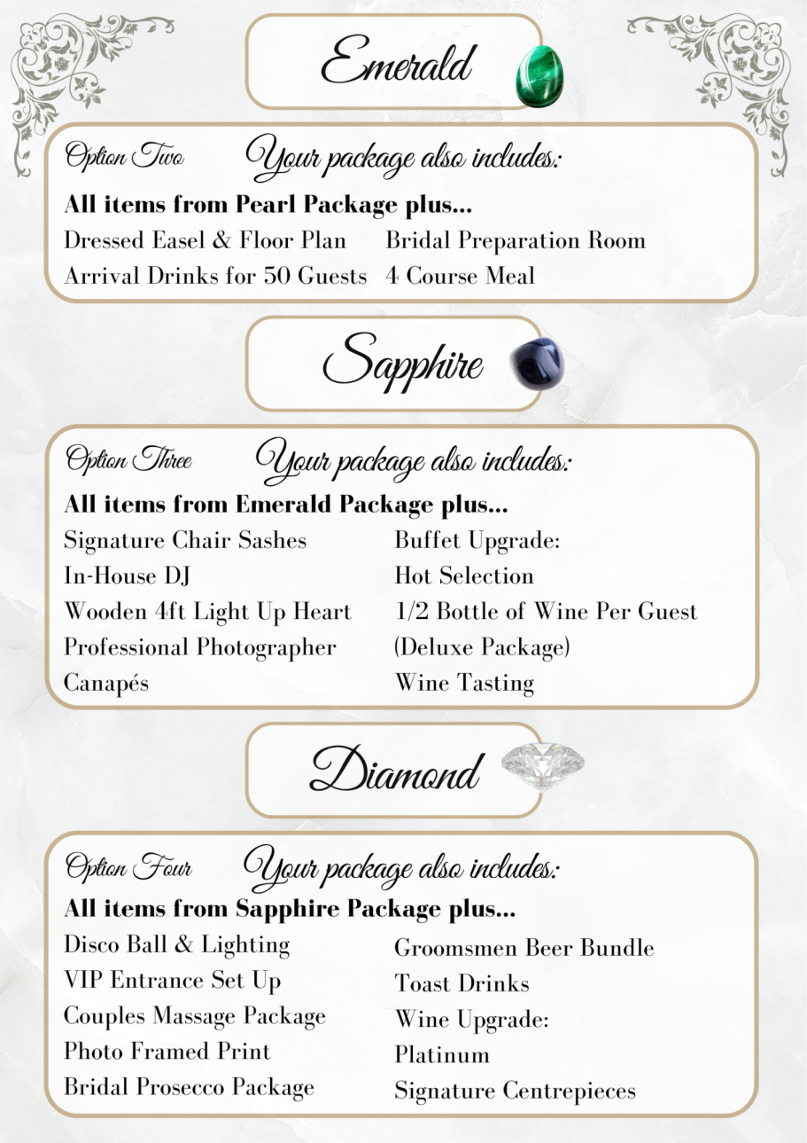 Our packages suit every celebration, from arrival drinks to money-saving vouchers, offering flexible options to complement your special day.